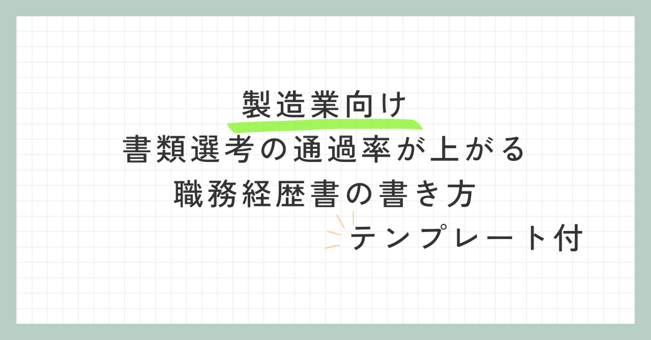職務経歴書については、noteで製造業ベースのものを販売していますので、